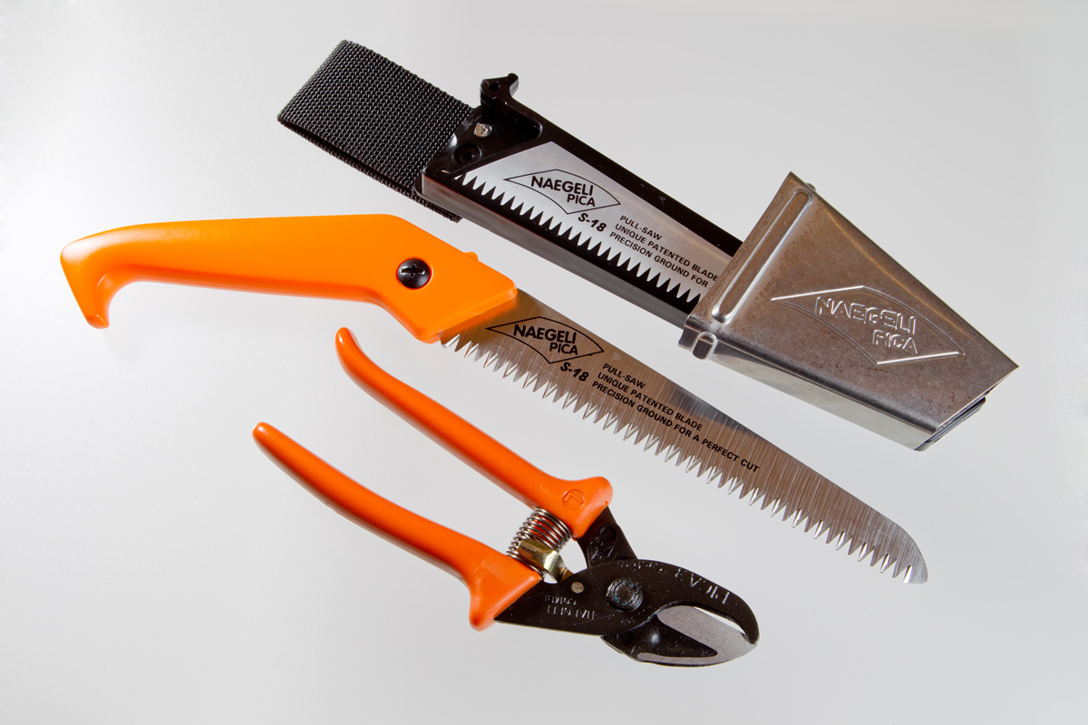 Das Schnitt-Set besteht aus Zugsäge und Schere Nägeli PICA 3 (mit auswechselbarer Klinge)